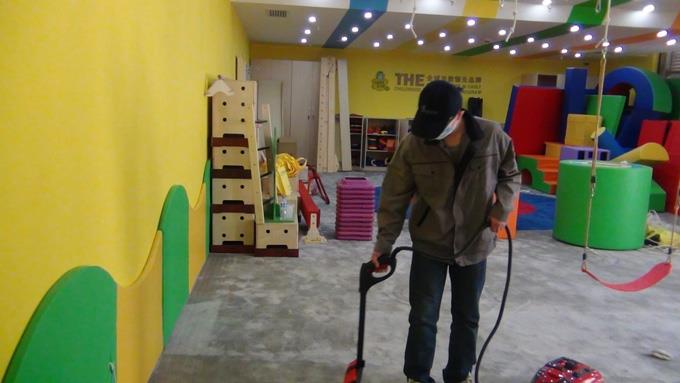 (图1)全新环净工作人员为爱乐早教中心室内进行治理